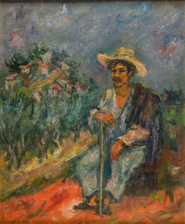 na odwrociu naklejka z napisem odręcznym: 'Jacques Zucker | Rabbinical Exam | Painted in Jerusalem, 1950 | Mea Scherem guarter'
