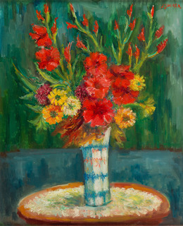 na odwrociu papierowa naklejka na górnej listwie: 'Still life Flowers | Oil | By Jacques Zucker'