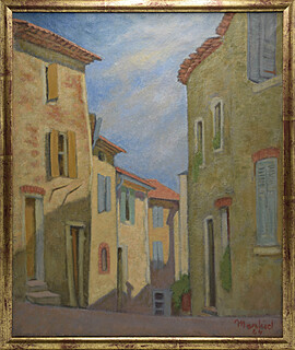 Na odwrociu płótna etykieta odręcznym napisem „J.Markiel 20/22 r.Richer, Paryż 9 Paysgae de Tolède Calle de las... prezent od malarza 1962”