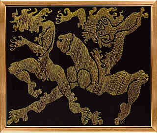 olej + akryl | 120 cm x 160 cm, powyżej pieczątka zezwolenia na wywóz za granicę, l.g trzykrotnie...