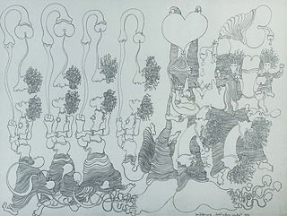 ołówek, papier, 74 x 52 w świetle passe-partout, na odwrocie nalepka z Gallery Vienna, Chicago, Stany Zjednoczone z opisem pracy