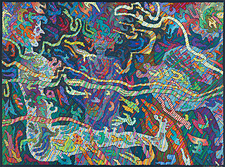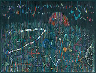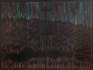 na odwr. sygn. p.g.: Jan Dobkowski | „CORAZ GŁĘBIEJ, GŁĘBIEJ, GŁĘBIEJ“ 1993-94 | ACRYL | 120 cm x 160 cm, na śr. belce krosna nalepka Galerii Grafiki i...