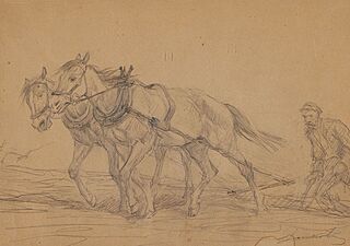 Ołówek, papier; 26 x 37,5 cm (w świetle oprawy)