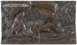 Relief, drewno lipowe, czernione; 26 x 45 cm