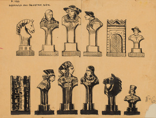 na odwrocie szkic rozwiązania kompozycyjnego (gwasz).