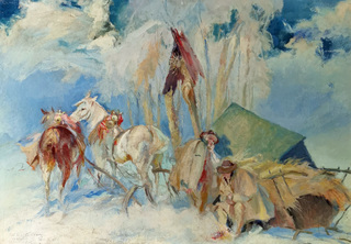 olej, tektura; 70 x 103 cm;