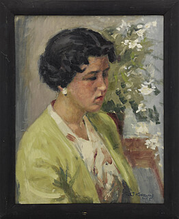 sygn. i dat.: J. KORWIN / 1955, na odwrocie nalepka z wystawy Sussex Brighton Art Gallery z 1956 roku.