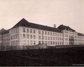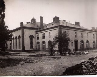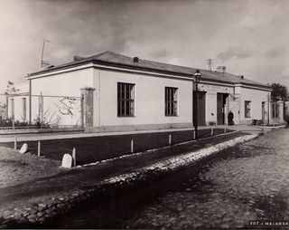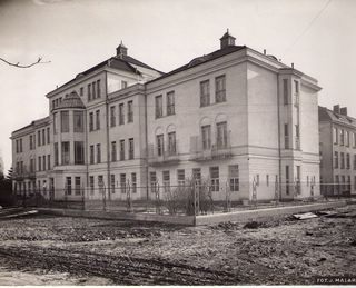Na odwrocie stempel: Agencja Fotograficzno-Prasowa / Jan Malarski / Chmielna 10, tel. 224-20 / Prawo reprodukcji zastrzeżone; maszynopis: Pawilon Obserwacyjno-Zakaźny szp. Sw. Stanisława /elewacja...