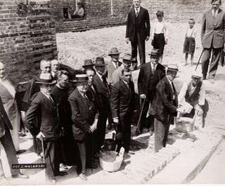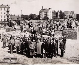 na odwrocie stempel:Agencja Fotograficzno-Prasowa / Jan Malarski / Chmielna 10, tel. 224-20 / Prawo reprodukcji zastrzeżone;piórem: budowa domu opieki dla opuszczonych dzieci starozakonnych przy ul....
