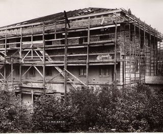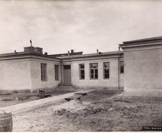 Na odwrocie stempel: Agencja Fotograficzno-Prasowa / Jan Malarski / Chmielna 10, tel. 224-20 / Prawo reprodukcji zastrzeżone; piórem: nadbudowa 1go piętra nad centralnym budynkiem na sale wykładową w...