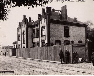 Na odwrocie stempel:Agencja Fotograficzno-Prasowa / Jan Malarski / Chmielna 10, tel. 224-20 / Prawo reprodukcji zastrzeżone; maszynopis: Budynek Posterunku Straży Ogniowej przy ul. Toruńskiej na...