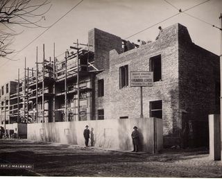 Na odwrocie stempel: Agencja Fotograficzno-Prasowa / Jan Malarski / Chmielna 10, tel. 224-20 / Prawo reprodukcji zastrzeżone; piórem: rozbudowa Miejskiego Instytutu Higjeny przy ul. Nowogrodzkiej 1 XI...