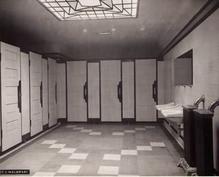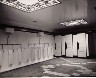 Na odwrocie stempel: Agencja Fotograficzno-Prasowa / Jan Malarski / Chmielna 10, tel. 224-20 / Prawo reprodukcji zastrzeżone; maszynopis: wnętrze szaletu podziemnego przy ul. Kr. Przedmieście Dnia...