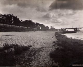 Na odwrocie stempel:Agencja Fotograficzno-Prasowa / Jan Malarski / Chmielna 10, tel. 224-20 / Prawo reprodukcji zastrzeżone; ołówkiem: Porządkowanie wybrzeża Wisły