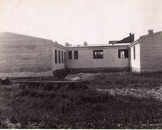 Na odwrocie stempel:Agencja Fotograficzno-Prasowa / Jan Malarski / Chmielna 10, tel. 224-20 / Prawo reprodukcji zastrzeżone; maszynopis: Budowa Ośrodka Zdrowia przy ul. Opaczewskiej na Ochocie.- 1929...