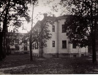 Na odwrocie stempel: Agencja Fotograficzno-Prasowa / Jan Malarski / Chmielna 10, tel. 224-20 / Prawo reprodukcji zastrzeżone; piórem: pawilon obserwacyjno-zakaźny w szp. Św. Stanisława