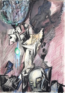 kredki, tusz, akwarela; karton; 32,5 x 23 cm;