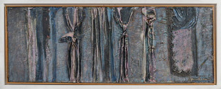 datowanie autorskie u dołu z prawej: 8 III 75 (częściowo zamalowana białą farbą); sygnowana u dołu z prawej: JM...