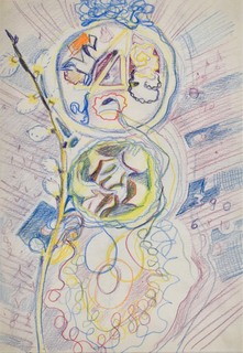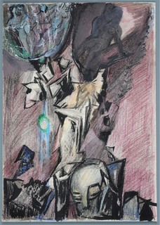 tusz, kreda, pastel, papier; 32,3 x 23 cm;