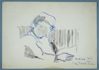 napis autorski u dołu z prawej: Niedziela 20. XI/ 66. / Mój Tadek czyta (piórem, atramentem).