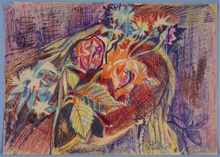 na odwrocie napisy autorskie(?), odręczne piórem: VI 69. Kwiaty i kompozycja (skreślone), niżej: nr 1 Przyroda. Obok czerwoną kredką: VI...