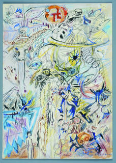 tempera, kredka, papier; 32,2 x 22,8 cm;