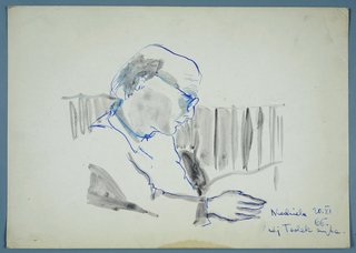 napis autorski u dołu z prawej: Niedziela 20. XI/ 66. / Mój Tadek czyta (piórem, atramentem).