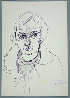 datowanie autorskie u dołu z prawej: 8 III 75 (częściowo zamalowana białą farbą); sygnowana u dołu z prawej: JM...