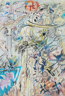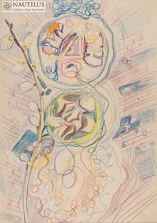 tusz, kreda, pastel, papier; 32,3 x 23 cm;