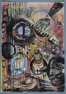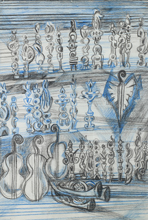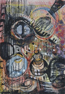 kredki, tusz, węgiel; karton; 30 x 21 cm;