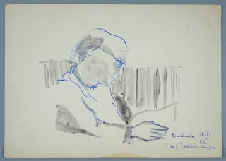 napis autorski u dołu z prawej: Niedziela 20. XI/ 66. / Mój Tadek czyta (piórem, atramentem).
