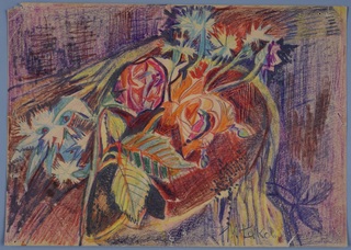 na odwrocie napisy autorskie(?), odręczne piórem: VI 69. Kwiaty i kompozycja (skreślone), niżej: nr 1 Przyroda. Obok czerwoną kredką: VI...