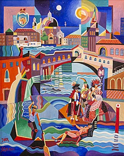 sygnowany l.d.'JAR | MMXXIII' oraz sygnowany i opisany na blejtramie: 'J.Reszka „Wenecja"'