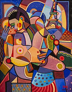 sygnowany p.d.:'JAR|22 XIX" oraz opisany na odwrocie '"MIŁOŚĆ W PARYŻU" JANUSZ RESZKA'