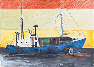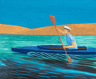 sygn. i opisany na odwrociu: 2021 / Jarosław / Modzelewski / "Wyprawa kajakiem" / 90 x 110 / tempera jajowa