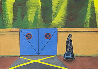 sygn. i opisany na odwrociu: Jarosław / Modzelewski 2013 / "Gdzie ja jestem?" / 150 x 200 / temp. żółtkowa