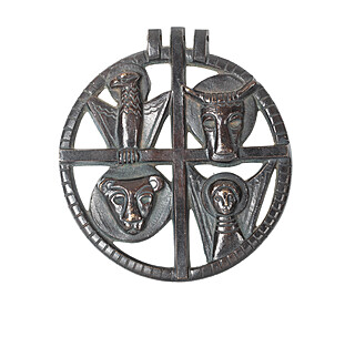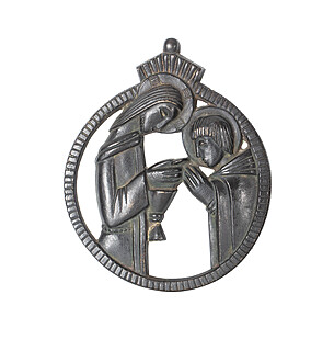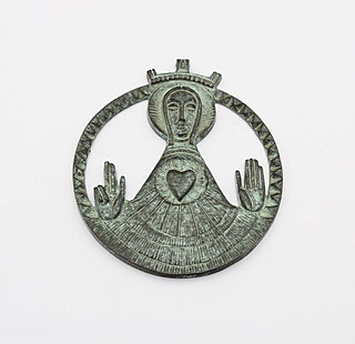 Kolisty - z postacią Chrystusa w popiersiu, wpisaną w obręcz, z rękami uniesionymi w geście błogosławieństwa; serce promieniujące;...