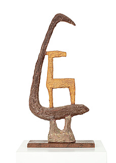 terakota patynowana, podstawa metalowa, 60 × 31,6 × 12,3 cm (wys. z podstawą 62,5 cm)