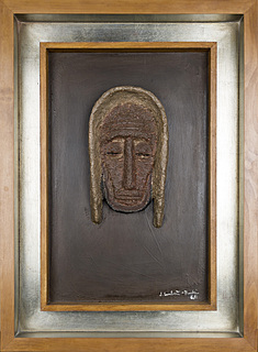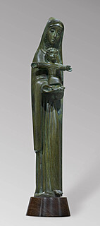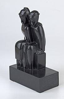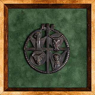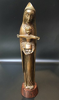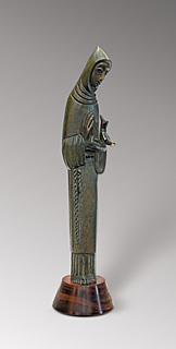 brąz, drewno, wym. całkowity: 30 × 25 cm (rzeźba: 19,5 × 20 cm)