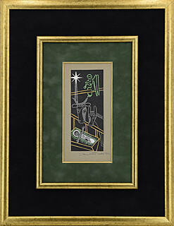 gwasz, czarny karton; 22 x 9 cm (w świetle passe-partout);