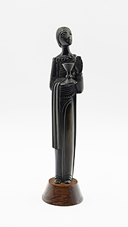 brąz patynowany na czarno, podstawa - drewno; wys. 28 cm;