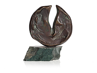 na spodzie naklejka z opisem pracy: 'NOWAKOWSKI | JERZY | [...] | "Introwersja..." | Brąz-granit | unikat | 1998r.'