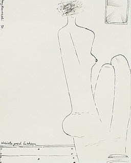 sygn. l.g.: Jerzy Nowosielski 90., opisany l.d.: Kobieta przed lustrem