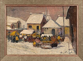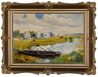 Stan zachowania: obraz wykonany na dwóch fragmentach zszytego płótna.