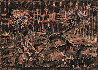 sygn. na odwr. różowym cienkopisem g.: [znak strzałki w górę] HAUT, d.: J. Tchórzewski 82 | Hommage a Karol Szymanowski – Peinture VIII [tytuł przekreślony] |...