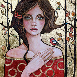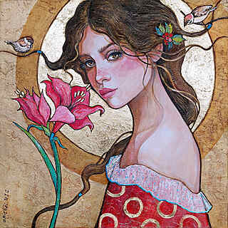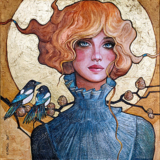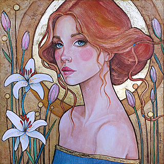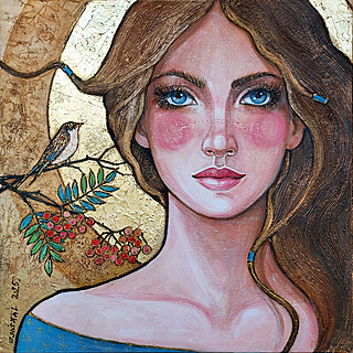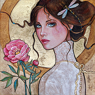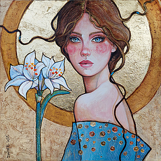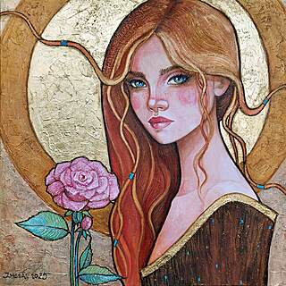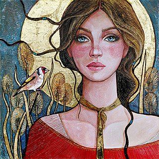 olej, akryl, szlagmetal, płótno, 50 x 50 cm