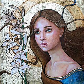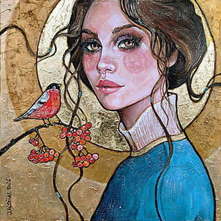 technika mieszana (olej, akryl, szlagmetal), płótno, 60 x 60 cm, sygn. l.d.: J. Misztal 2025