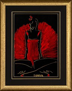 Pastel, tusz, papier, 70 x 50 cm, oprawiony