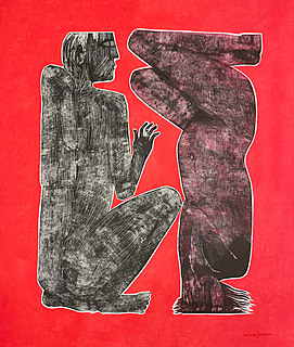 akryl, linoryt, papier barwiony, 60,5 x 53,3 cm