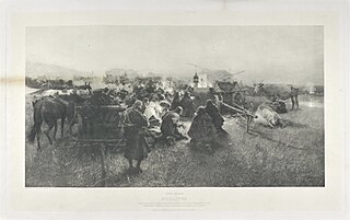 napis pośrodku u dołu: JÓZEF BRANDT / MODLITWA / Według ormiańskiej legendy o obrazie Matki Boskiej wywiezionym z K. Podolskiego w r. 1672 /...